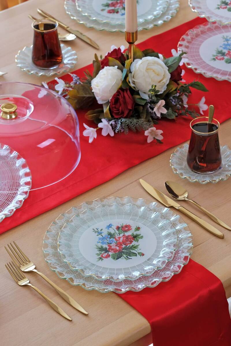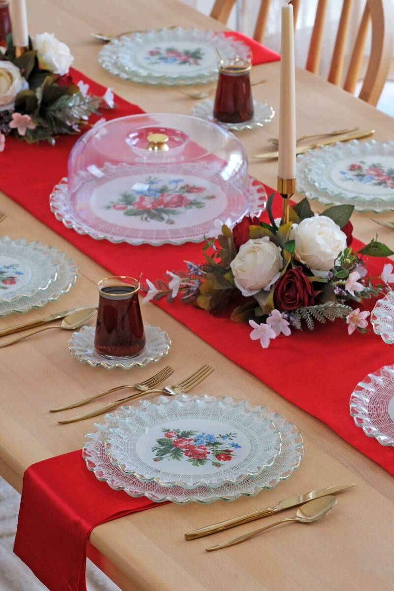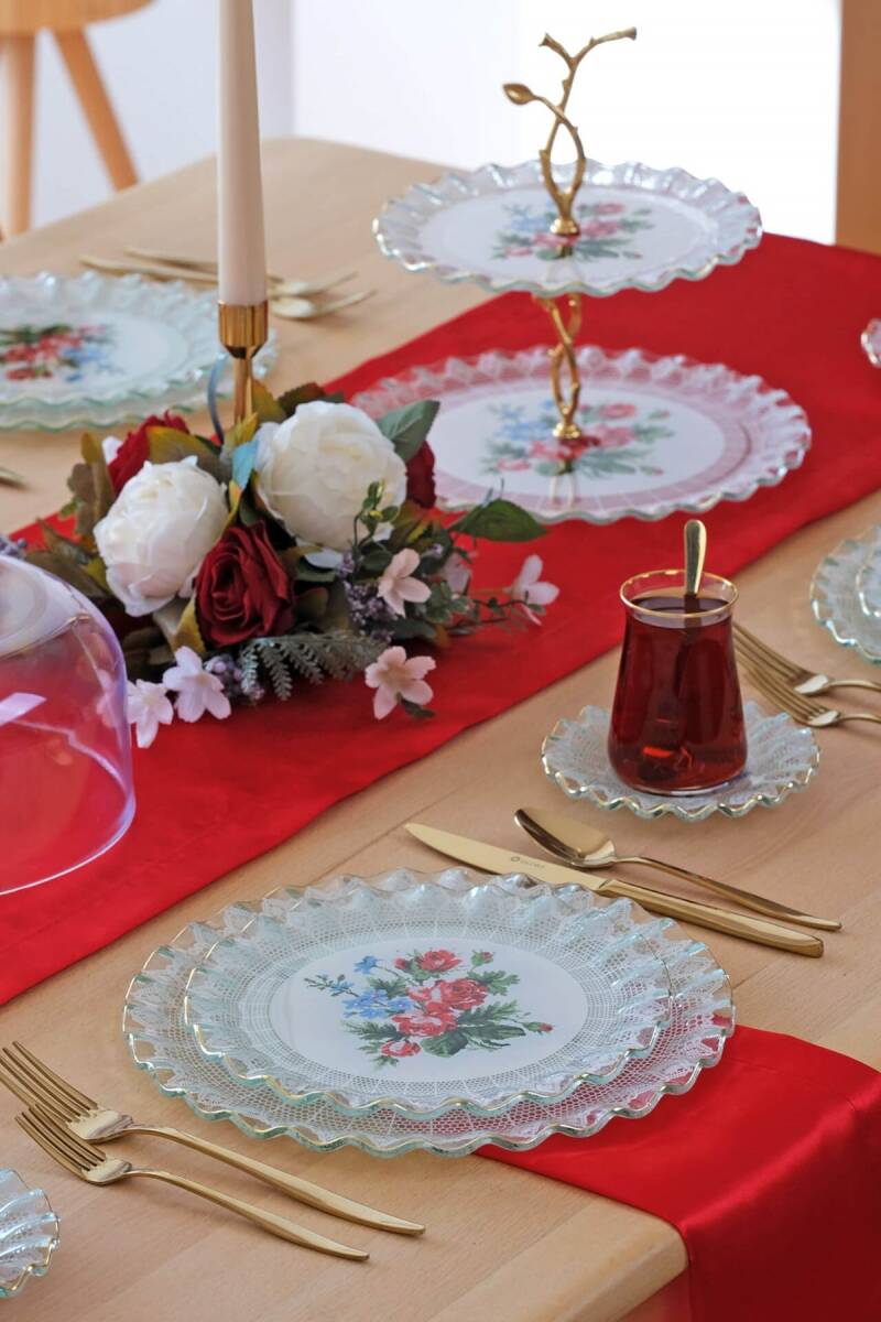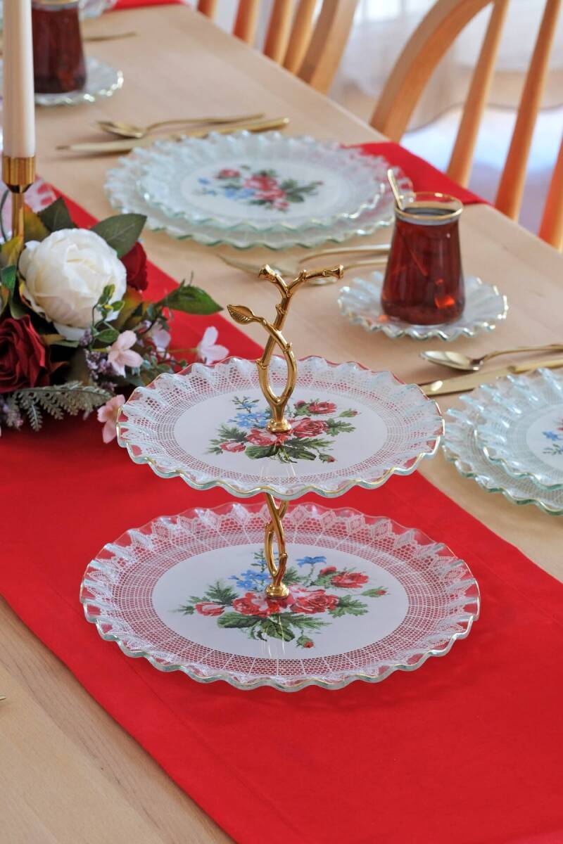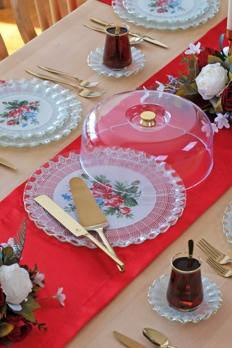 - 1 adet 31cm altın yaldızlı cam kek tepsisi