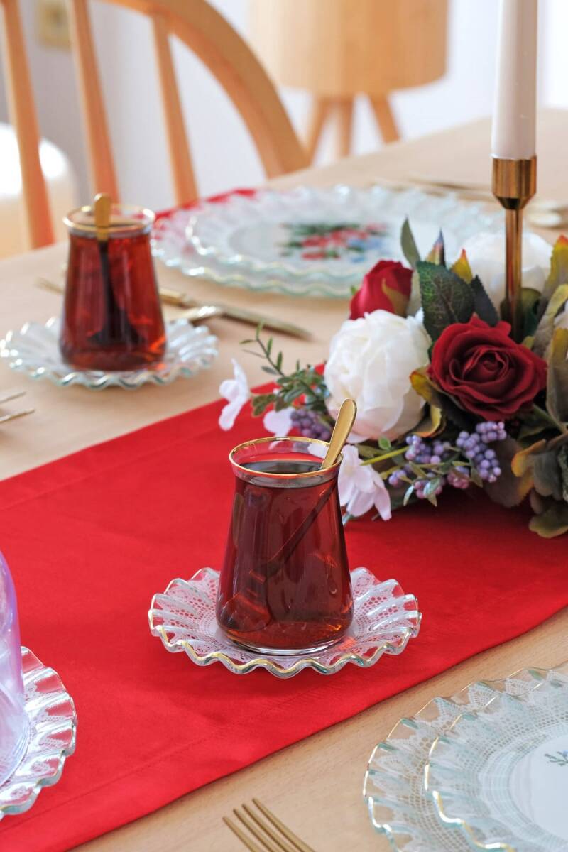 - 6 adet altın yaldızlı cam çay bardağı