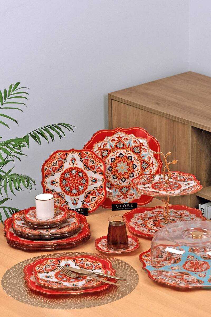 Glore Onega Altın Yaldızlı 6 Kişilik 34 Parça Pasta Servis Takımı