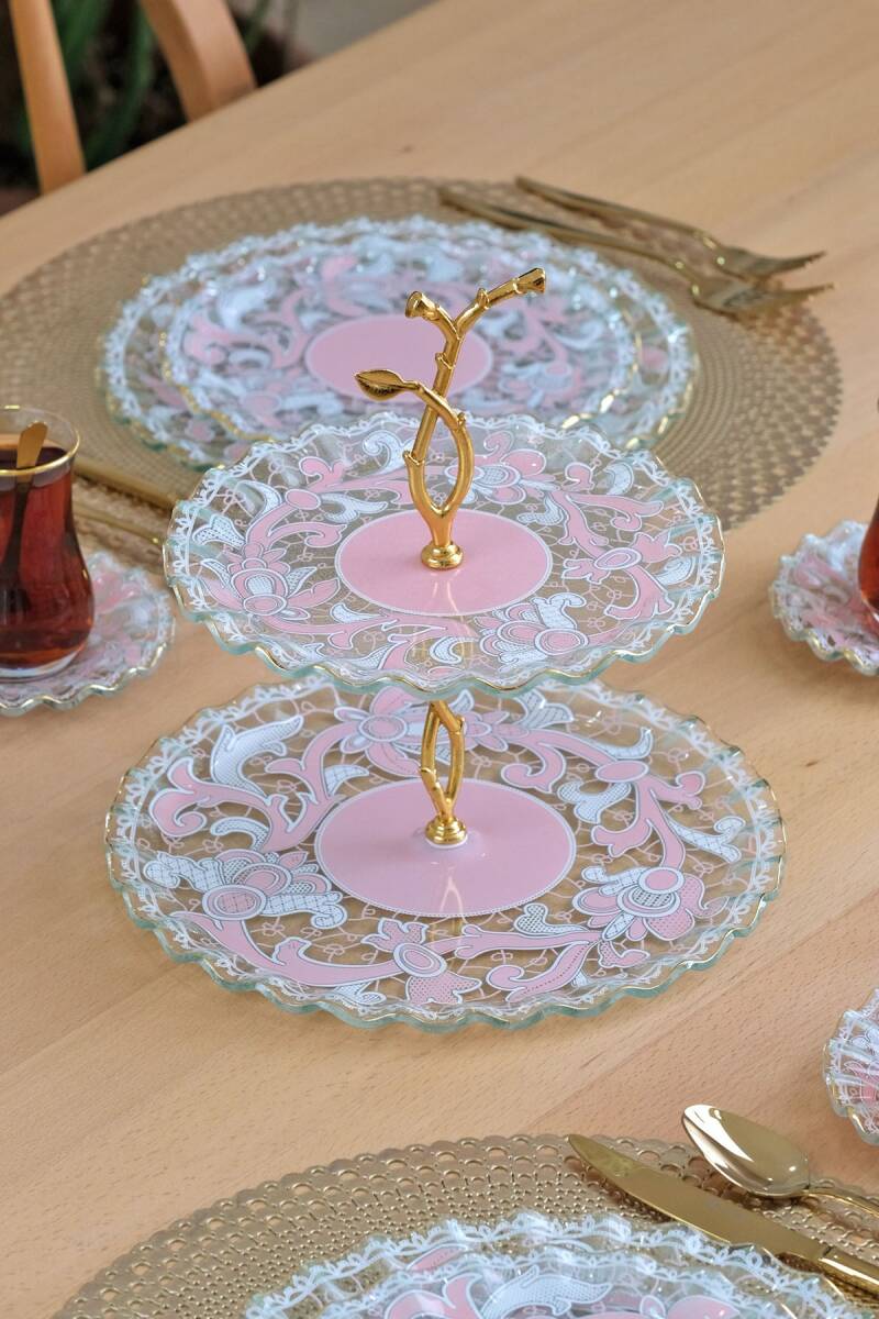 - 1 adet 31cm altın yaldızlı cam kek tepsisi