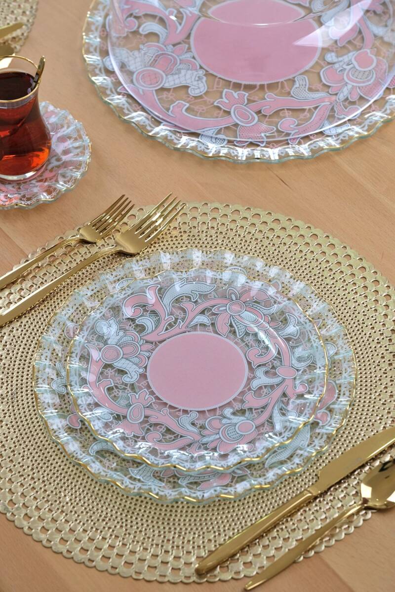 - 6 adet 21cm altın yaldızlı cam pasta tabağı