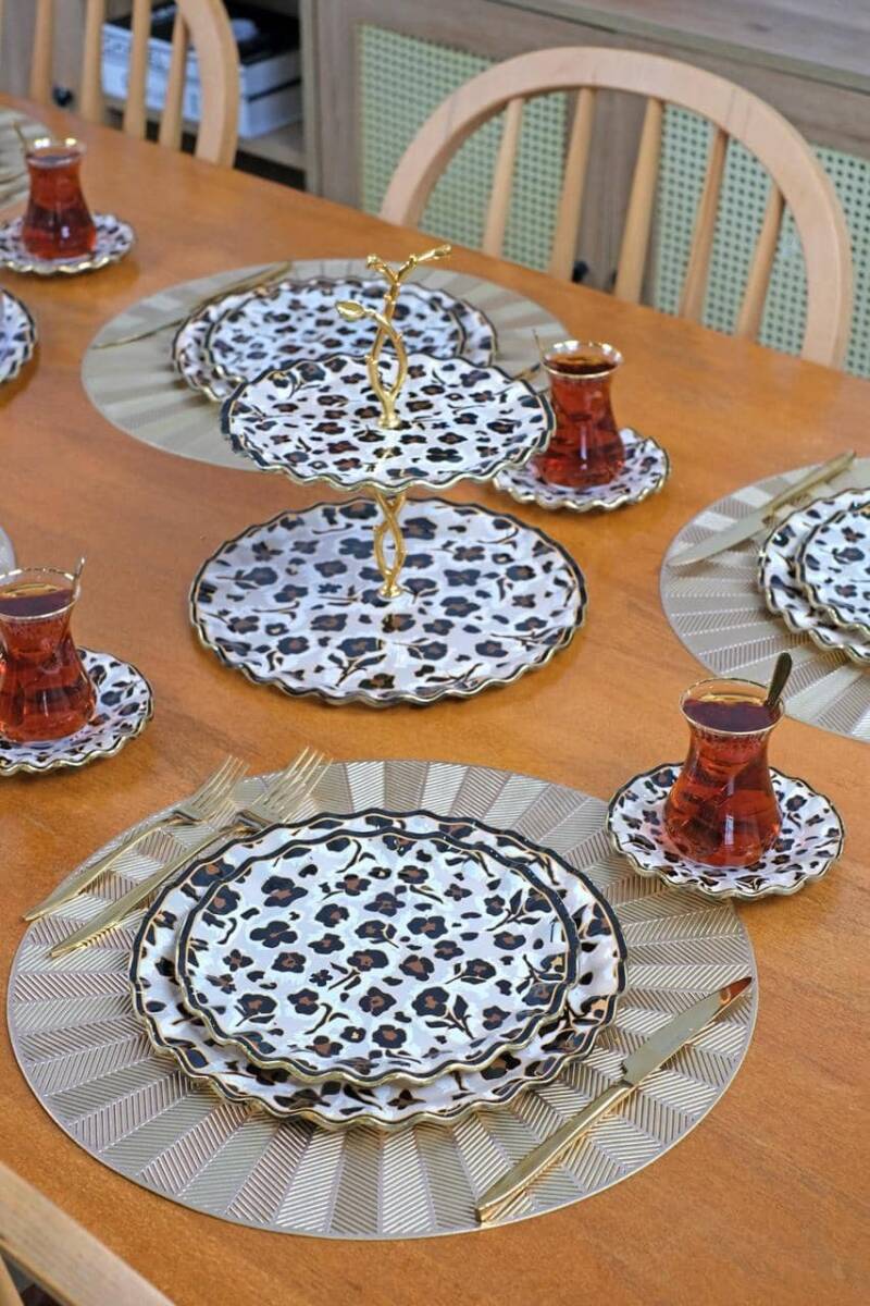 Glore Panthera Altın Yaldızlı 6 Kişilik 26 Parça Pasta Takımı