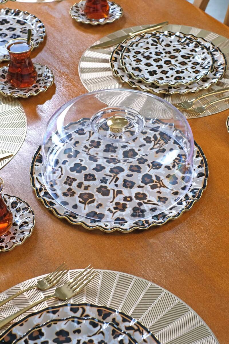 Glore Panthera Altın Yaldızlı Cam Kek Fanusu