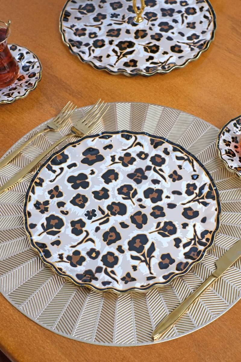 Glore Panthera 6 Kişilik Altın Yaldızlı Cam Pasta Tabağı Takımı