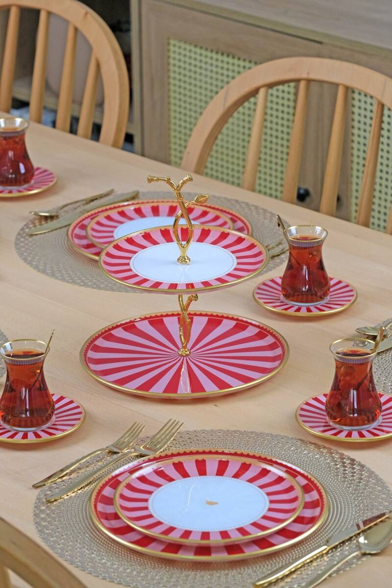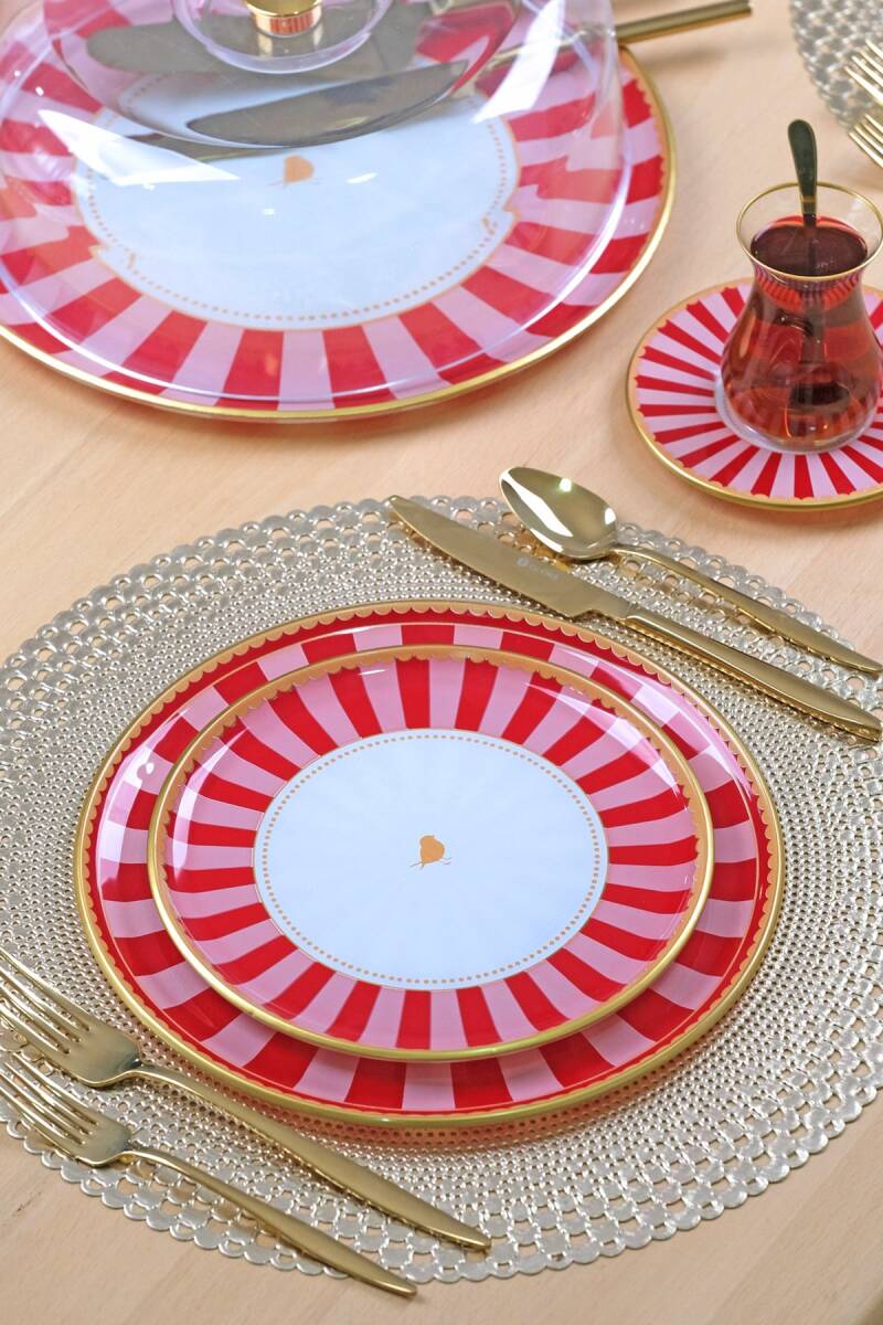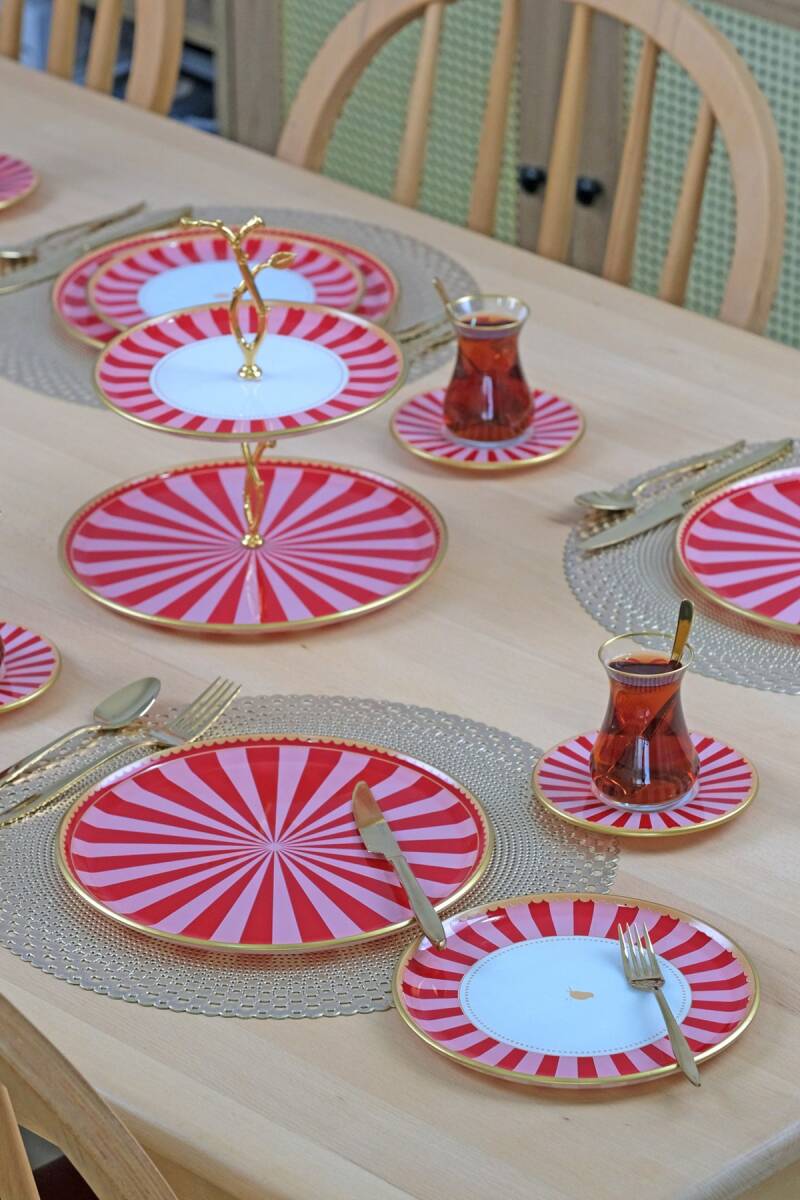 Glore Pink Line 34 Parça 6 Kişilik Pasta Servis Takımı