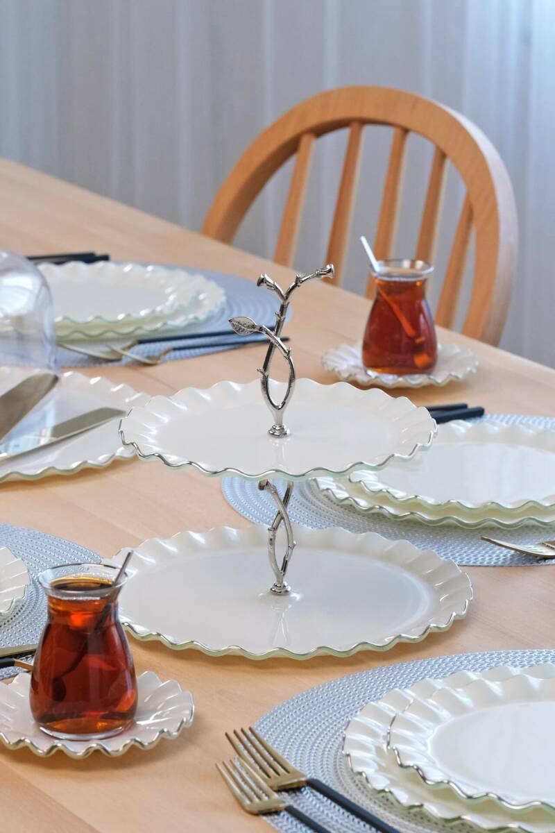 - 1 adet 31cm platin yaldızlı cam kek tepsisi