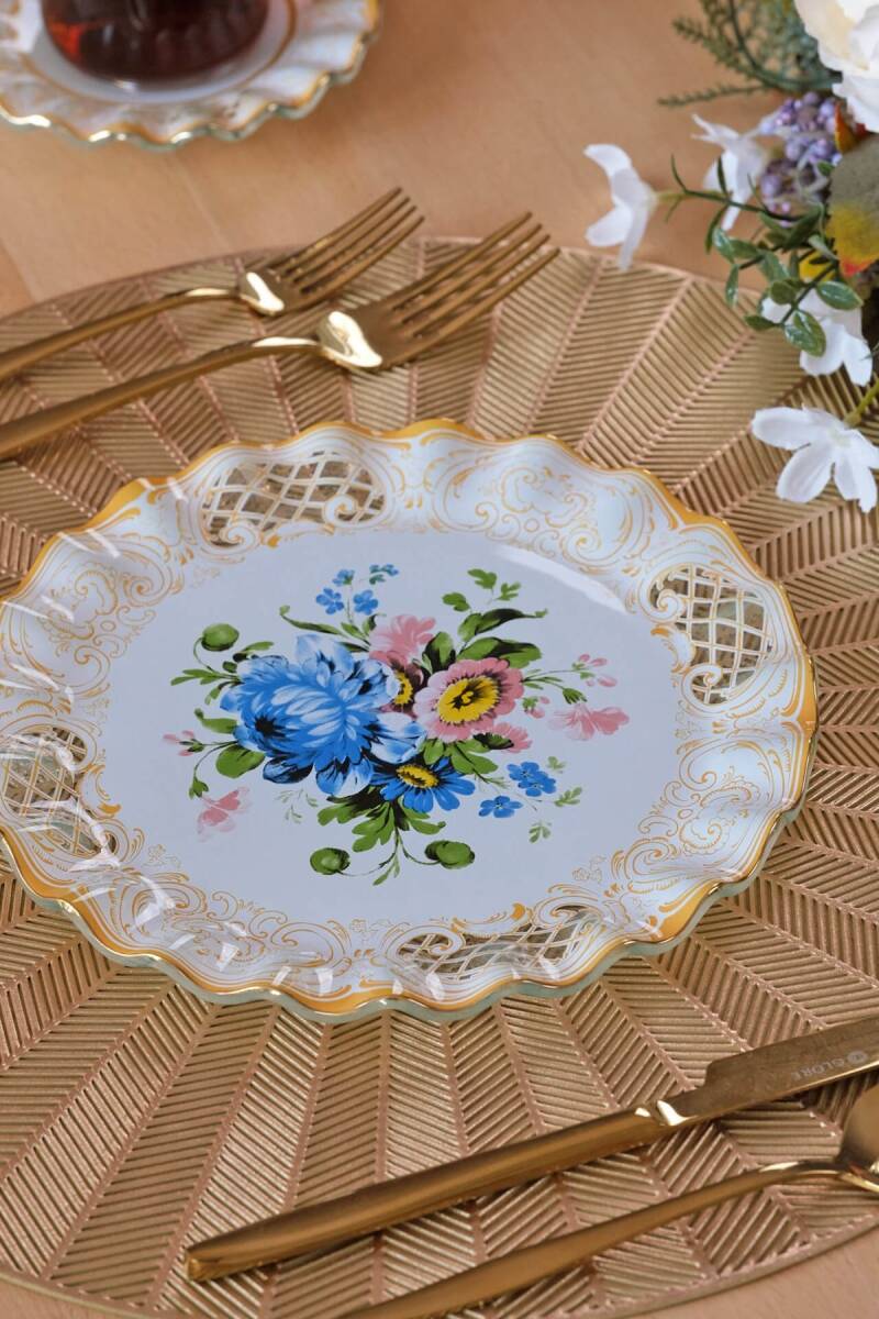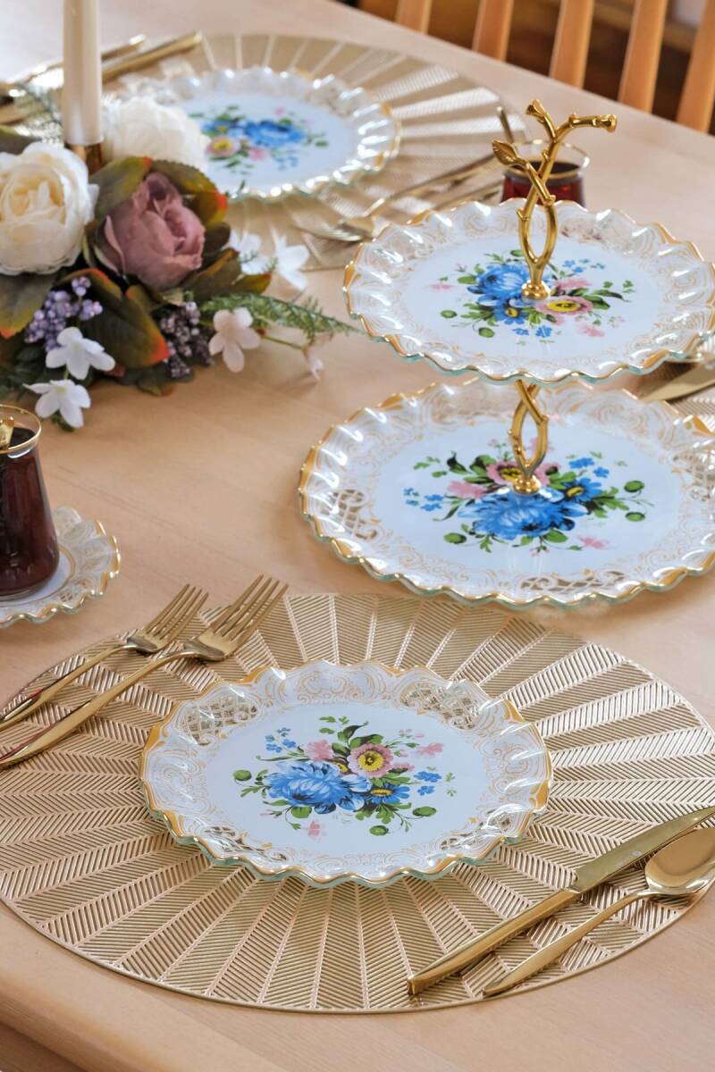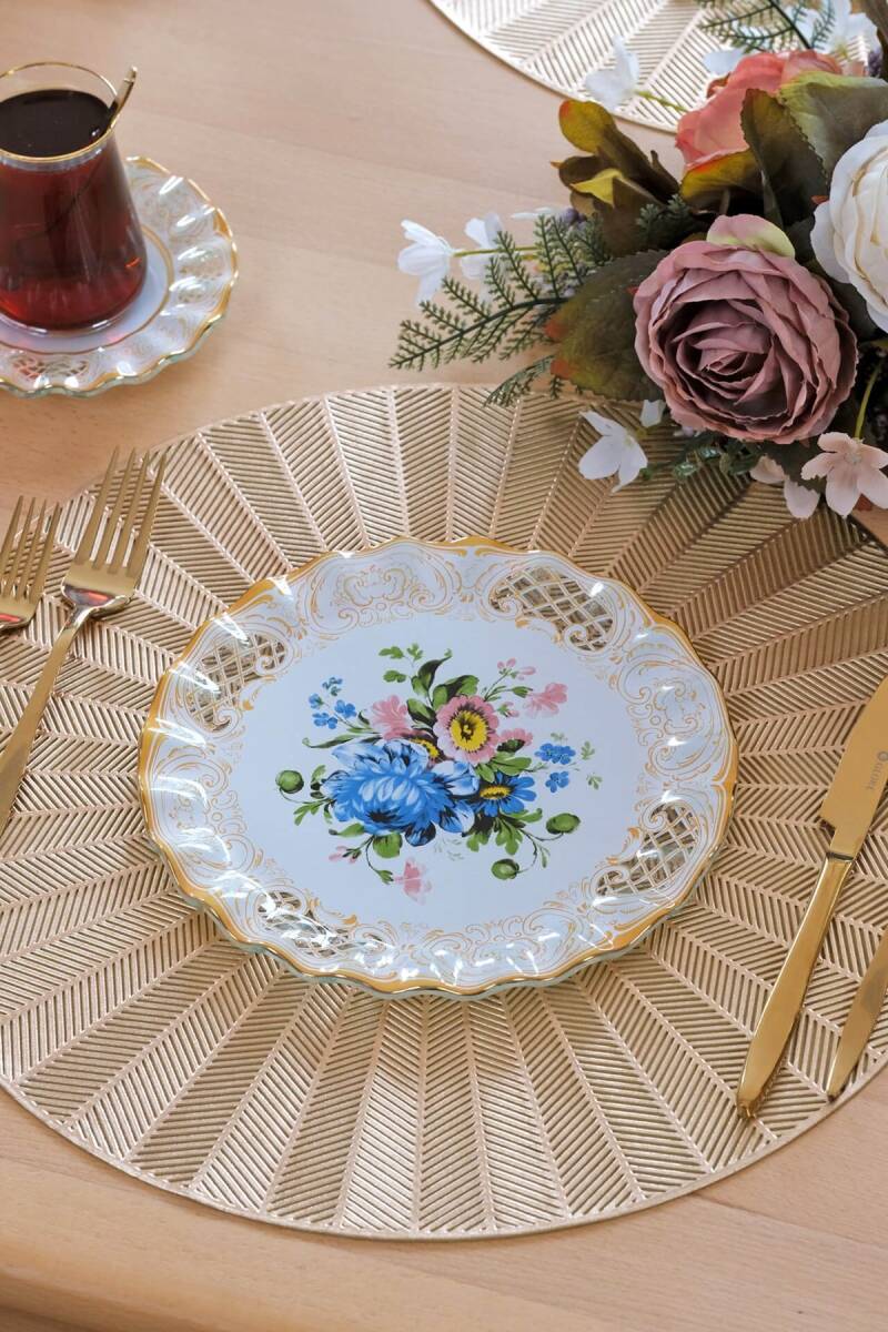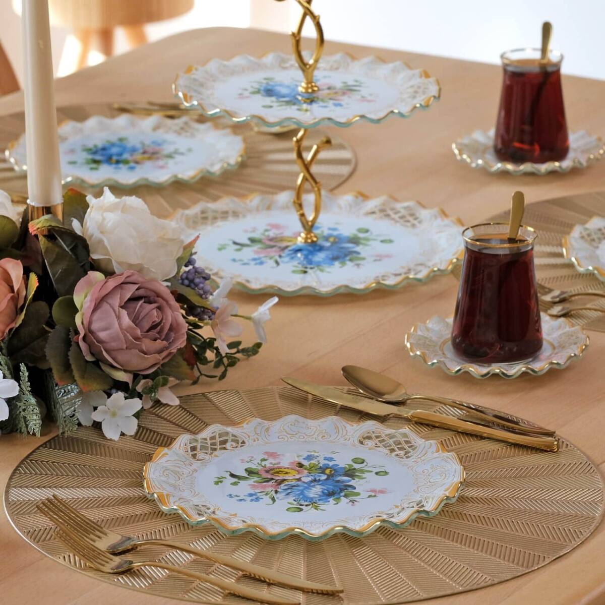 - 6 adet 21cm altın yaldızlı cam pasta tabağı
