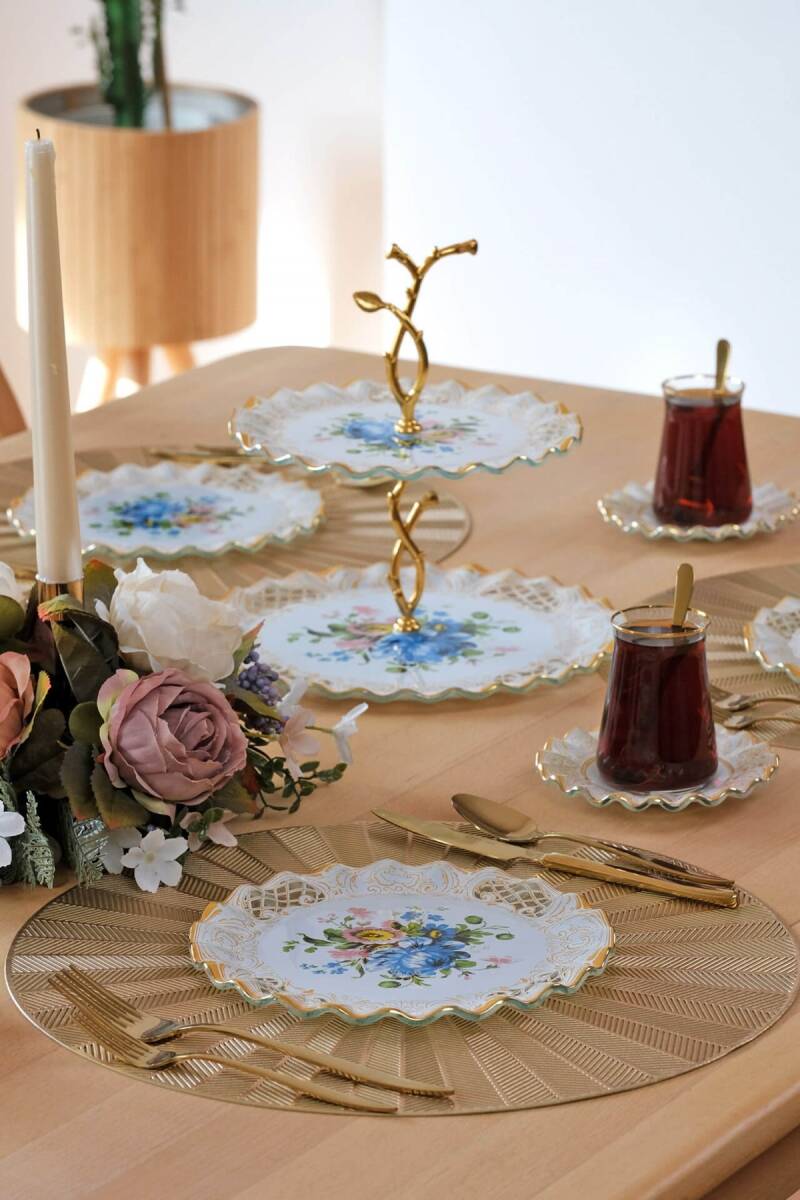 Glore Tiete Altın Yaldızlı 6 Kişilik 26 Parça Pasta Takımı